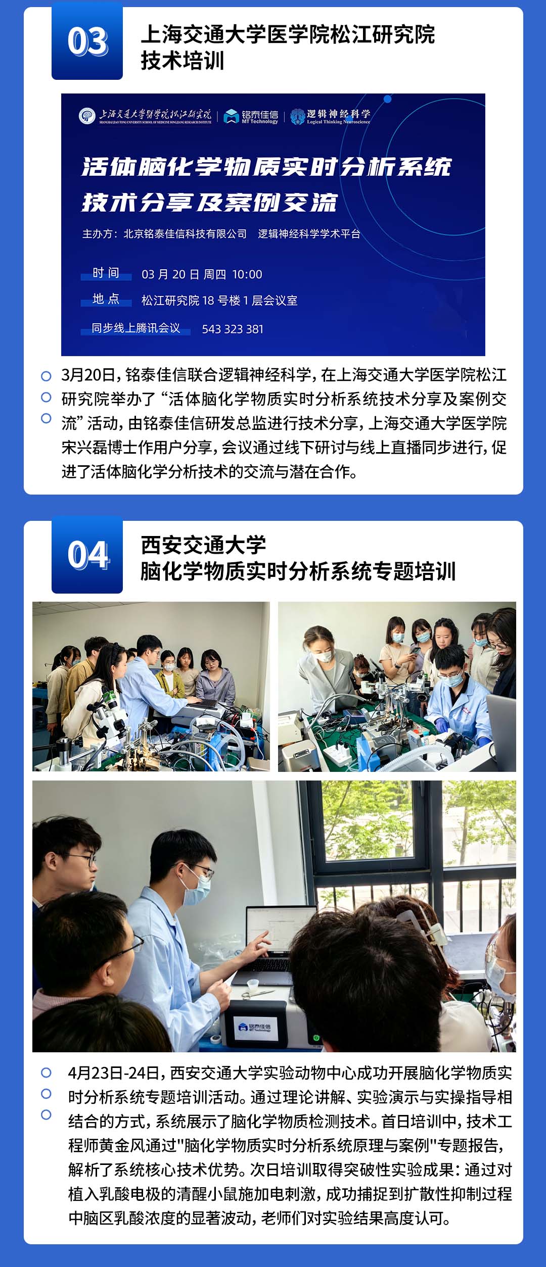 为推动活体脑化学分析检测技术的广泛应用,铭泰佳信与“逻辑神经科学”前沿技术论坛开展系列深度合作,共同推出专题技术培训直播课程。本系列课程围绕活体脑化学物质实时分析系统,每期设定不同主题,持续分享该领域的前沿知识、方法与应用进展,为相关科研人员提供系统的学习与交流平台。